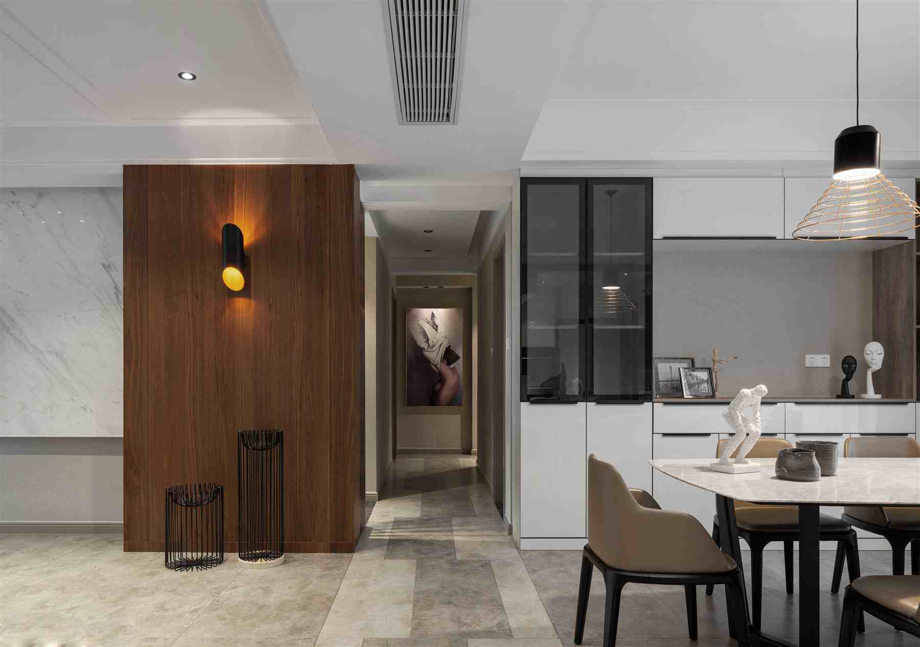 后現(xiàn)代風(fēng)格作為一種設(shè)計(jì)潮流,推崇自然、高雅的生活情趣中,更加強(qiáng)調(diào)人性化的主導(dǎo)地位,突出設(shè)計(jì)的文化內(nèi)涵。簡單的石膏線線條,獨(dú)具設(shè)計(jì)感的射燈設(shè)計(jì),空間的光線明暗有序,