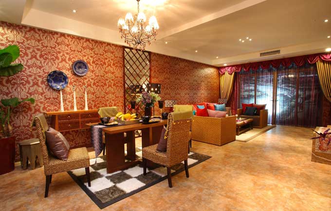 經(jīng)典濃重的色彩,碩大的花紋圖案,適當比例的運用,自然風(fēng)格家私飾品的點綴,引領(lǐng)出高貴、新穎、豪華的東南亞風(fēng)格。