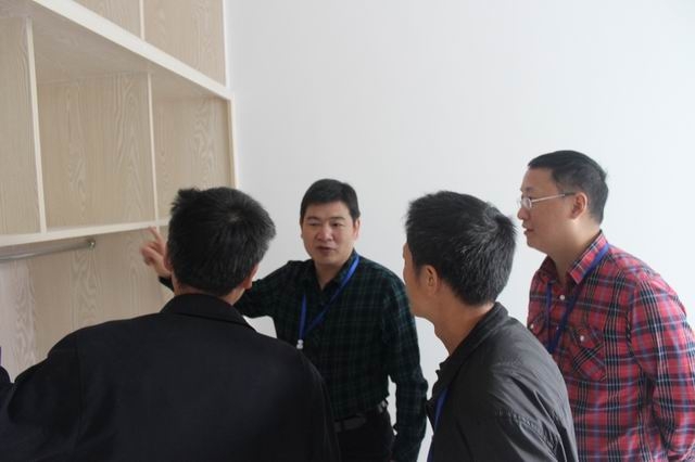 張總正在向工程部人員詳細(xì)講解木作工藝施工要點(diǎn)