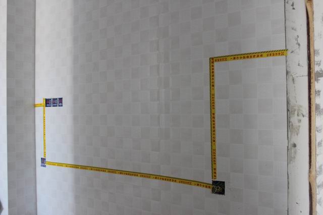 張總在仔細(xì)檢查墻面貼磚工藝細(xì)節(jié)