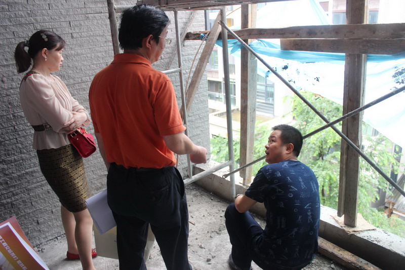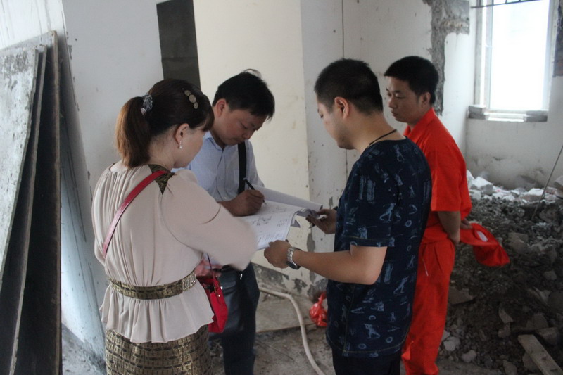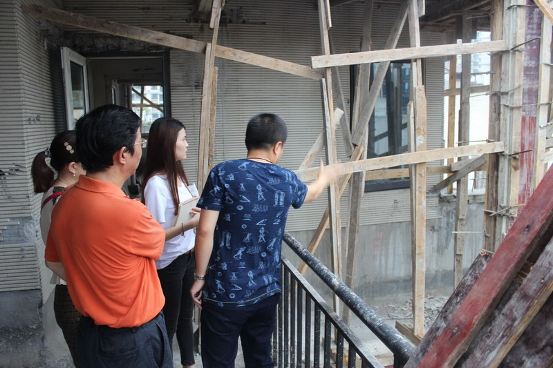 在進場過程中,專門做頂樓花園設計的美女也來了哈。大家根據(jù)現(xiàn)場情況,商討頂樓花園的設計方案。