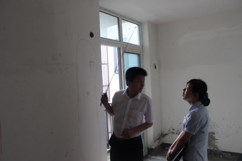 質檢正在跟雅居樂的物業(yè)工作人員溝通墻體的空鼓情況,工作人員表示會在三個工作日之內處理好潘老師愛居的空鼓問題。為我們的質檢點個大大的贊!