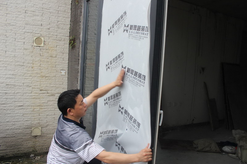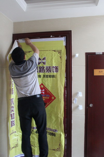 張貼門保護,確保在裝修過程中大門不被損壞。