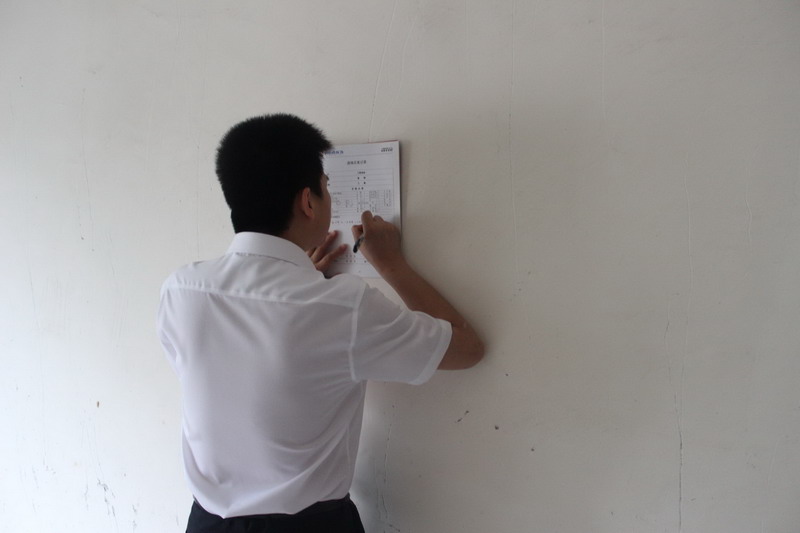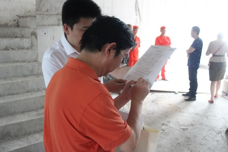 質檢正在認真填寫客戶服務手冊,以確認本次進場交底符合公司工程施工管理的相關規(guī)定。