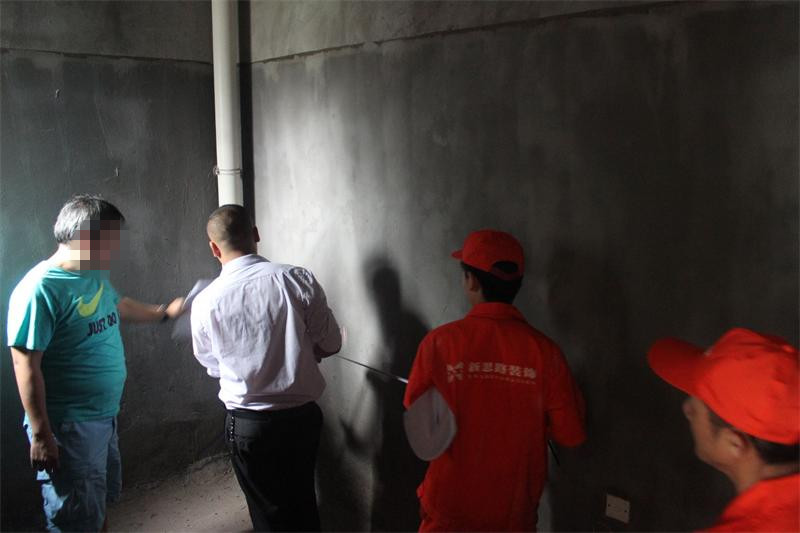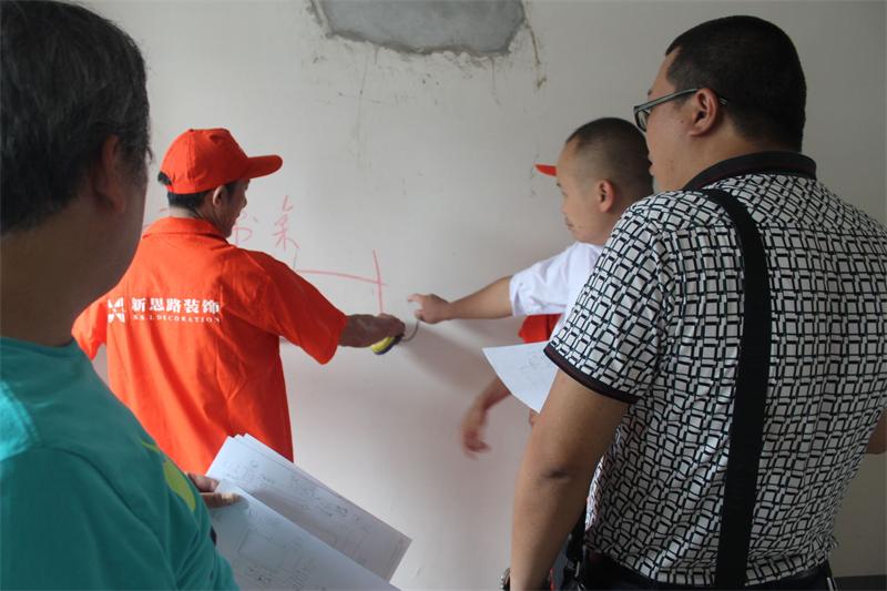 工程質(zhì)檢正在向業(yè)主介紹公司施工管理和服務(wù)的標準。新思路裝飾一直堅持“客戶滿意是唯一的工作標準”,努力踐行“裝修做客戶口碑”的理念,致力為每一位客戶提供高品質(zhì)的工程質(zhì)量和裝修服務(wù)。