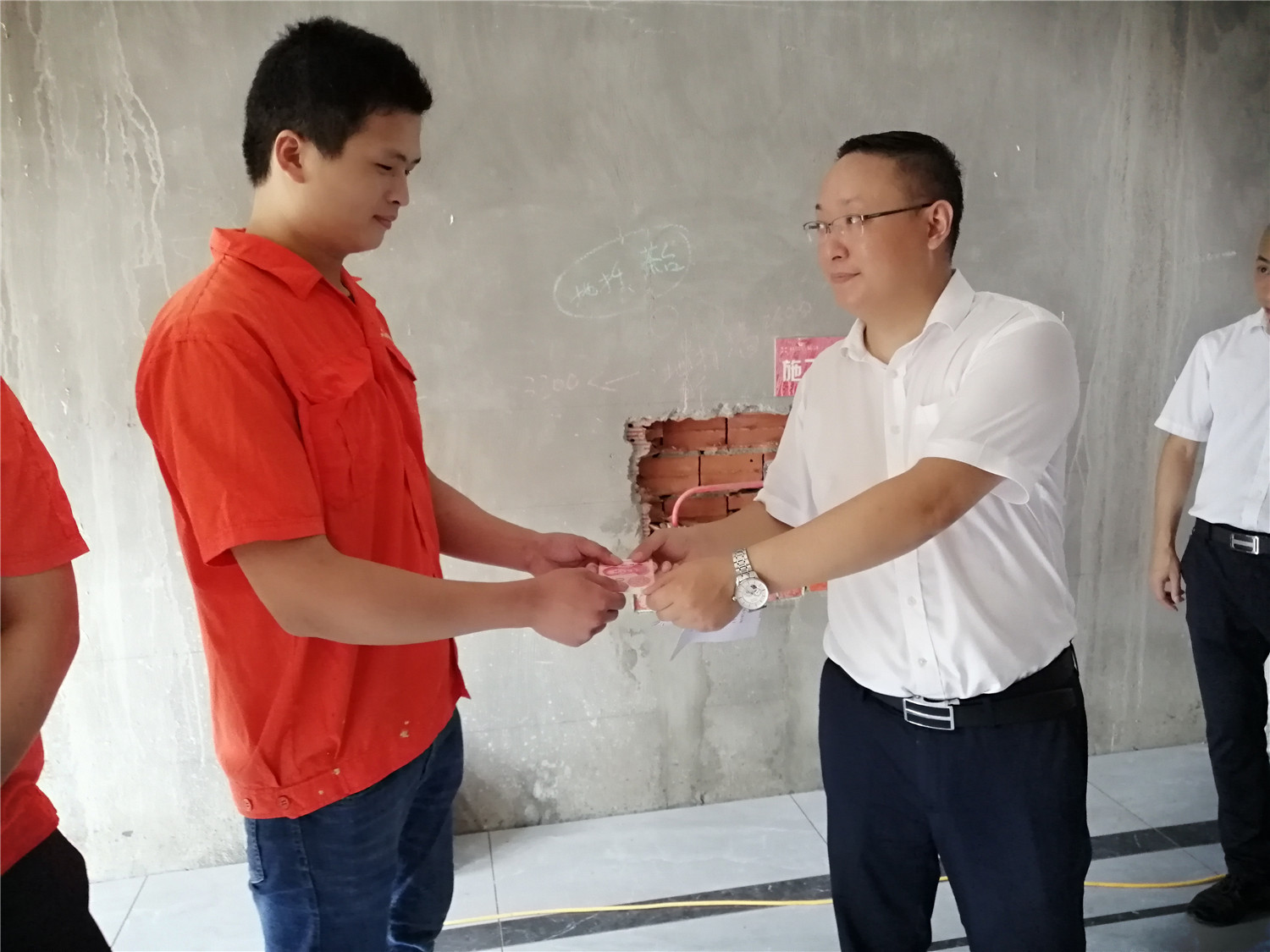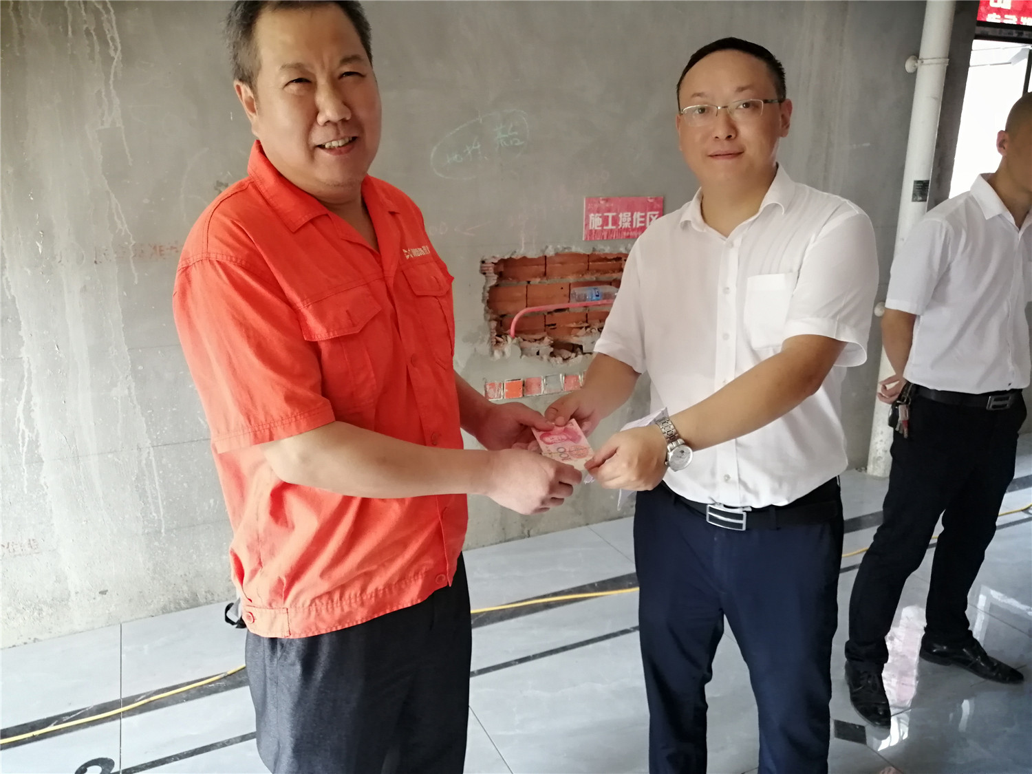 文經(jīng)理給問題回答正確的工人現(xiàn)場(chǎng)發(fā)放現(xiàn)金獎(jiǎng)勵(lì)
