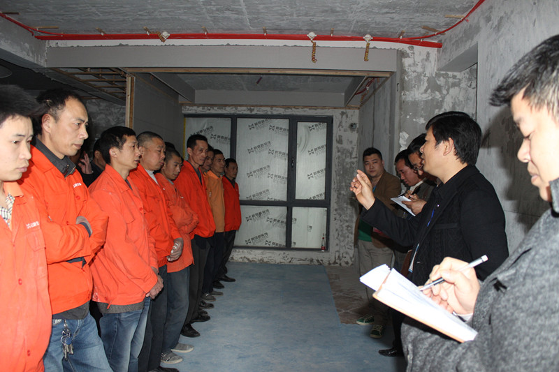 張總在培訓(xùn)會(huì)上詳細(xì)講解泥工的工藝要求及標(biāo)準(zhǔn)時(shí),員工非常專心,工程質(zhì)檢也在認(rèn)真作筆記
