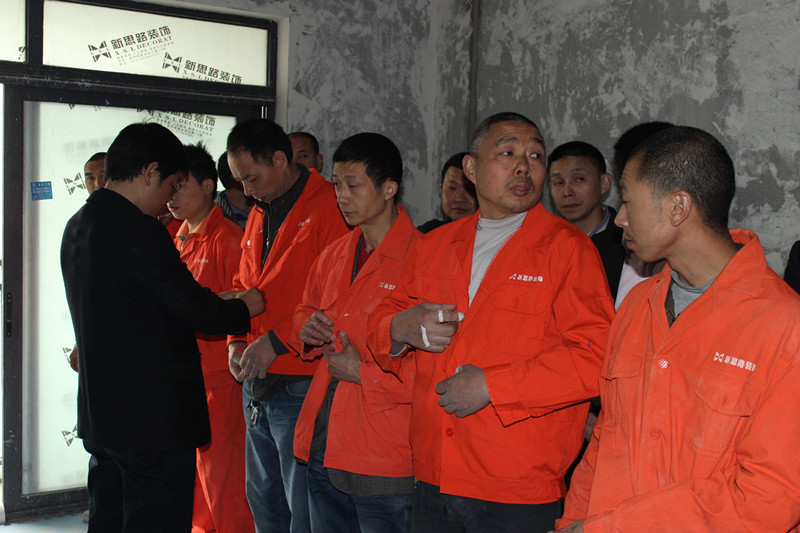 此次培訓(xùn)由具有二十多年施工經(jīng)驗(yàn)的張總親自主持。首先,張總以提問(wèn)的形式宣講了公司的基本信息和企業(yè)文化,同工人們進(jìn)行了熱烈互動(dòng),對(duì)于回答正確的工人,當(dāng)場(chǎng)給予現(xiàn)金獎(jiǎng)勵(lì)。張總強(qiáng)調(diào),作為新思路裝飾的一員,牢記公司的一些基本信息不僅能加強(qiáng)對(duì)公司的了解,同時(shí)也是展現(xiàn)新思路員工職業(yè)素養(yǎng)和形象的新窗口。隨后張總又從泥水施工新工藝技術(shù)、工序流程、規(guī)范標(biāo)準(zhǔn)、注意事項(xiàng)等方面對(duì)工人們進(jìn)行了專業(yè)培訓(xùn)。在培訓(xùn)過(guò)程中,張總以現(xiàn)場(chǎng)在施工工地為實(shí)例,通過(guò)一些鮮活的事例,比如一根線,兩顆釘子,怎樣找水平;平整度、垂直度如何檢測(cè);磚與磚接縫高低差標(biāo)準(zhǔn);陰陽(yáng)角角度差等,進(jìn)行現(xiàn)場(chǎng)示范和講解。工人們也積極發(fā)言,提出一些獨(dú)到的觀點(diǎn)和見(jiàn)解,張總也熱情耐心地同他們交流討論,現(xiàn)場(chǎng)氣氛輕松而熱烈。