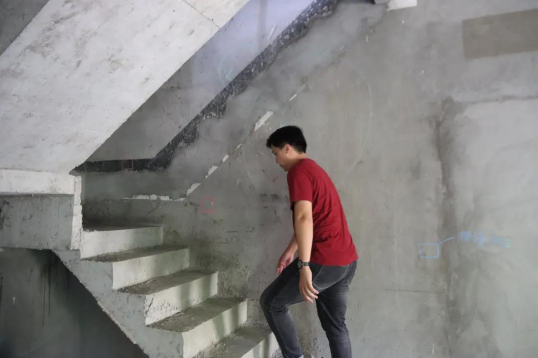 ▲設(shè)計(jì)師戴杰準(zhǔn)備上樓查看現(xiàn)場