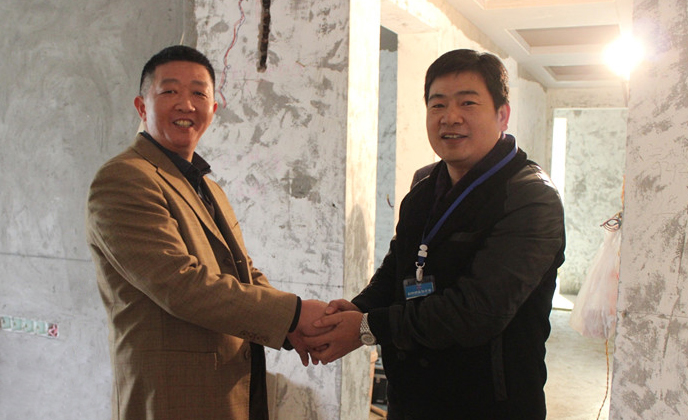 在雅居樂20-5-5工地,我們巧遇了正在工地忙碌的業(yè)主蔣老師。得知我們是巡查小組之后,蔣老師非常熱情地同張總握手,并連連稱贊新思路施工水平高,服務(wù)熱心周到,令他非常滿意。張總代表公司對蔣老師的信任和肯定表示了感謝,他鄭重表示,為客戶提供放心有保障的裝修服務(wù)是我們新思路的責任,客戶的認可和肯定是對我們的最高褒獎。新思路將不忘客戶托付,把每個工程都做成客戶心中滿意的“國標工地”。