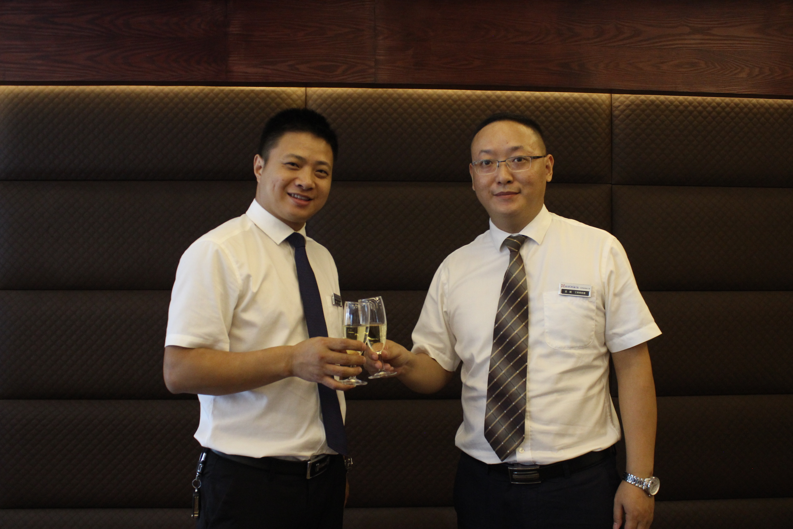 巴南店桑店長(zhǎng)和南坪店楊店長(zhǎng)和工程部文經(jīng)理碰杯