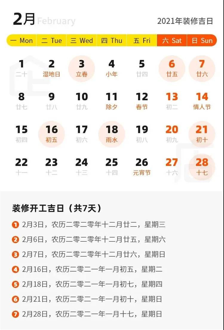新思路裝飾‖裝修要聞◇2021年裝修吉日,收藏備