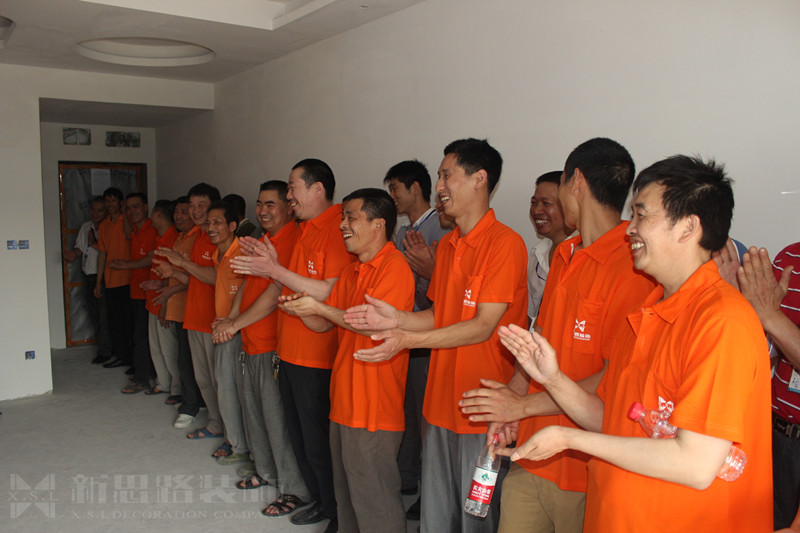 培訓(xùn)當(dāng)天天氣炎熱,氣溫高達(dá)36℃,但工人依舊精神飽滿,整齊穿戴新思路工服,井然有序的排成一列,展現(xiàn)出新思路裝飾施工隊伍團結(jié)向上的新形象。在培訓(xùn)中,張總以現(xiàn)場工地為實例,通過一些鮮活的事例,全面剖析了漆工工種現(xiàn)階段工藝技術(shù)提升要領(lǐng),對照問題、難點尋找最佳解決方案,提出了很多創(chuàng)新性的漆工工藝,他的精彩發(fā)言不時博得工人們的陣陣掌聲。同時,工人們也針對實際施工情況提出了一些獨到的觀點和見解,對于積極發(fā)言的工人,工程部也當(dāng)場給予現(xiàn)金獎勵,培訓(xùn)現(xiàn)場掌聲不斷,氣氛輕松而熱烈。培訓(xùn)最后,張總作了總結(jié)性發(fā)言。他表示:“漆藝水平事關(guān)工程質(zhì)量和客戶口碑,我們的工人們一定要多思考、多學(xué)習(xí),努力鉆研新的漆工技藝,提高自身的漆工水平。同時也希望你們能把新思路當(dāng)成自己的家,大家都能在這個舞臺上共同進(jìn)步,共同提高,賺更多的錢!”張總樸實真摯的話語再次博得了所有人的熱烈掌聲。