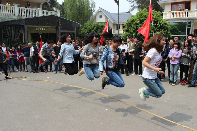 陽春布德澤,萬物生光輝。四月的鐵山坪風(fēng)光秀麗,景色優(yōu)美,所有員工暫時(shí)拋去城市的喧囂,盡情體驗(yàn)返璞歸真的樂趣。下午2點(diǎn),新思路裝飾戶外特訓(xùn)營(yíng)活動(dòng)正式拉開序幕。本次拓展活動(dòng)共有團(tuán)隊(duì)跳繩、同舟共濟(jì)、默契大考驗(yàn)、掌上明珠、團(tuán)隊(duì)拔河等五個(gè)游戲。這一系列的游戲,都是需要團(tuán)隊(duì)協(xié)作、相互配合才能完成。每個(gè)小隊(duì)都齊心協(xié)力,分工合作,為拿到最后的冠軍而拼盡全力?;顒?dòng)現(xiàn)場(chǎng)加油聲、口號(hào)聲、歡呼聲此起彼伏。每個(gè)項(xiàng)目完成后,勝利的歡呼聲都會(huì)響徹整個(gè)現(xiàn)場(chǎng),全體隊(duì)員也深刻地感受了一回有共同目標(biāo)的團(tuán)隊(duì)所能產(chǎn)生的能量和效果。