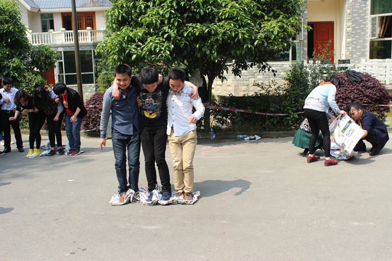以“同舟共濟(jì)”游戲?yàn)槔?,游戲以小?duì)為單位,每隊(duì)派出3名隊(duì)員參賽,用報(bào)紙膠帶動(dòng)手制作用來渡河的“舟”,制作好后3人站在“舟”上同心協(xié)力從起點(diǎn)到達(dá)終點(diǎn)。每個(gè)隊(duì)的造舟時(shí)間為五分鐘,時(shí)間到即停止造舟開始比賽,哪個(gè)小隊(duì)最先完成比賽即算勝利。這個(gè)游戲重點(diǎn)考驗(yàn)團(tuán)隊(duì)成員的協(xié)作性和默契度,細(xì)節(jié)決定成敗,一旦失誤就會(huì)對(duì)其他隊(duì)員造成直接影響。游戲過程中每位隊(duì)員分工合作,各司其職,團(tuán)結(jié)一致,充分發(fā)揮集體智慧,為了共同的目標(biāo)而拼盡全力。