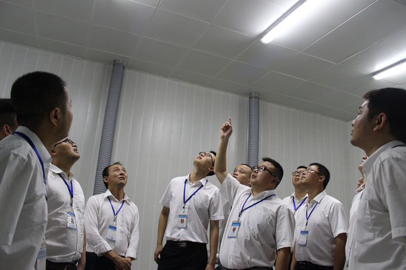 在宗申集團(tuán)工地,李總向大家講解特殊天花板材料知識(shí)。