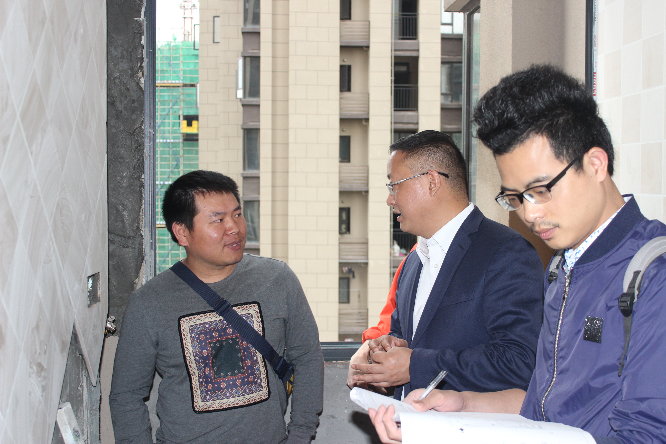 在此次巡查過(guò)程中,遇見(jiàn)了好幾位業(yè)主,各業(yè)主對(duì)公司的施工工藝及工地形象都給予了肯定。保利愛(ài)尚里的業(yè)主張先生,表?yè)P(yáng)了項(xiàng)目經(jīng)理?xiàng)铊a十分積極的工作態(tài)度,并對(duì)他的施工工藝提出了寶貴的建議。在保利江上明珠遇到了業(yè)主唐女士,更是對(duì)新思路裝飾的工人師傅贊不絕口,一直夸我們的工人師傅工藝好、不浪費(fèi)材料、負(fù)責(zé)任??蛻舻目隙?,就是對(duì)我們最大的支持。對(duì)于客戶的建議,我們虛心接受,在今后的施工過(guò)程中,我們將更加嚴(yán)謹(jǐn)仔細(xì)。將更好的工藝標(biāo)準(zhǔn),工地形象展現(xiàn)給每一位業(yè)主!