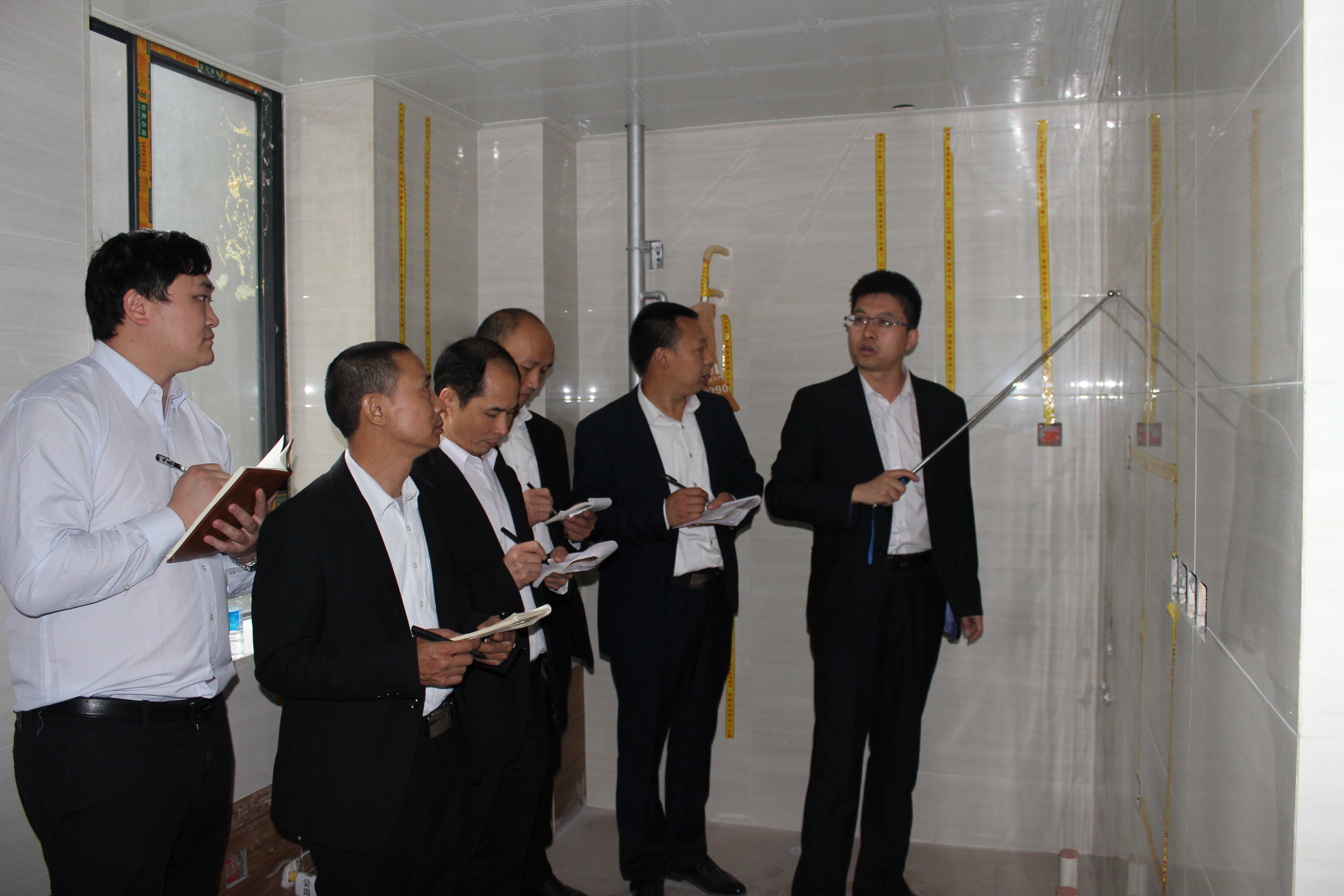 這次巡查,除了工地形象、施工進(jìn)程、工藝工序之外,施工標(biāo)準(zhǔn)、施工安全、現(xiàn)場(chǎng)管理等方面也是考察的重點(diǎn)。剛踏入工地,巡檢隊(duì)伍立即忙碌起來(lái),有檢查衛(wèi)浴水電改造,測(cè)試瓷磚空鼓,測(cè)量強(qiáng)弱線管分布,以及臥室等線路鋪裝等等。每位檢查人員都各司其職,每一項(xiàng)檢查都細(xì)致到位。對(duì)于檢查情況,巡查人員也如實(shí)記錄工程情況及施工質(zhì)量情況,并責(zé)令相關(guān)項(xiàng)目經(jīng)理限期整改。對(duì)于工地形象規(guī)范施工的工地,文經(jīng)理對(duì)該項(xiàng)目經(jīng)理特提出口頭表?yè)P(yáng)和現(xiàn)金獎(jiǎng)勵(lì),并希望在今后的工作中再接再厲!同時(shí)希望所有項(xiàng)目經(jīng)理以他們?yōu)榘駱樱鷮?shí)實(shí)的做好本職工作,為新思路美好的明天添磚加瓦!