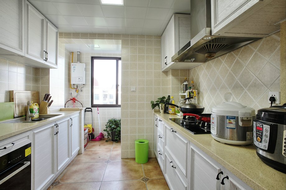 廚房的燈要明亮,這樣眼睛就能不費力的看清楚要切的是蒜苗還是蔥;燈泡,不要裝黃燈,不然,蔬果肉類的顏色易失真。記得廚房是打仗的地方,不是搞氣氛的地方。現(xiàn)在吊頂主燈有幾種做法,包括嵌燈,日光燈或流明吊頂。流明吊頂是利用亞克力板或白膜玻璃嵌入頂棚中,好處是可讓光源更均勻的灑下,但缺點是造價比較貴但廚房要亮,不是靠吊頂燈,而是要加強重點照明,例如在切菜的臺面上方以及燃氣灶上方,皆可再加裝一盞燈。