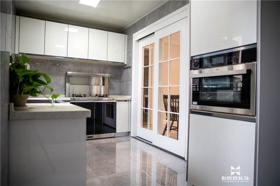 廚房的裝飾設(shè)計不應(yīng)影響廚房的采光、通風(fēng)、地磅照明等效果。在設(shè)計上首先要考慮安全問題。隱蔽工程一定要做好,尤其是廚房的插座位置要妥當(dāng),否則會影響到廚柜的尺寸和整體效果。