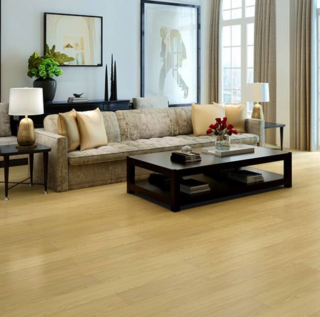 目前強化木地板所選用的基材多為中、高密度纖維板或刨花板,要觀察其壓制得是否牢固,不變形、不發(fā)漲、不翹曲、不滲透。